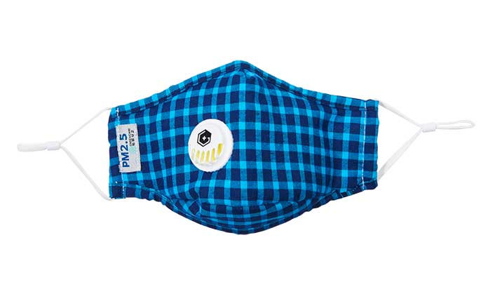 成人純棉立體帶閥口罩-深藍(lán)格子